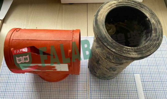 某建筑技术集团在某环保建材公司处购买涉案塑胶法兰和铸铁件用于厂区消防内外网工程。这批建材使用中14个塑胶法兰出现破裂,1个铸铁沟槽正三通出现破裂,双方就此产生纠纷并将案件诉至当地人民法院,法院立即委托我单位对涉案塑胶法兰、铸铁件沟槽正三通破裂原因进行质量鉴定。
